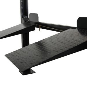 The Mayflower Blacksmith Four Post Lift Pro 8000 is a heavy-duty car lift designed for storage and service. It has