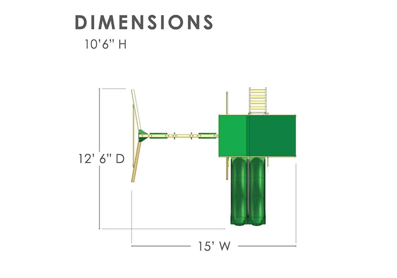 Speed to the finish line with the Outing Wood Swing Set with Vinyl Canopy and Yellow Dual Slides by Gorilla Playsets. This charming playset includes two side-by-side yellow Alpine Wave Slides so kids can compete in friendly races. The Outing Swing Set also features two extreme-duty swing belts, a trapeze bar assembly, a built-in sandbox area, and so much more. The Green Deluxe Vinyl Canopy protects the play deck from the elements and provides a shady spot on sunny days. This swing set includes all required hardware, all lumber, and a step-by-step instruction manual to reduce assembly time. The lumber comes pre-sanded, pre-cut, and pre-stained at the factory. Even the main beams come pre-drilled to cut back on building time. Gorilla Playsets’ cedar lumber naturally resists rot, decay, and insect damage. We recommend using a sealant, like our Playground Sealant, within the first 90 days to keep your swing set looking nice and help prolong the life of the play system. Order your Outing Wood Swing Set with Vinyl Canopy and Dual Slides today and race to the finish line!